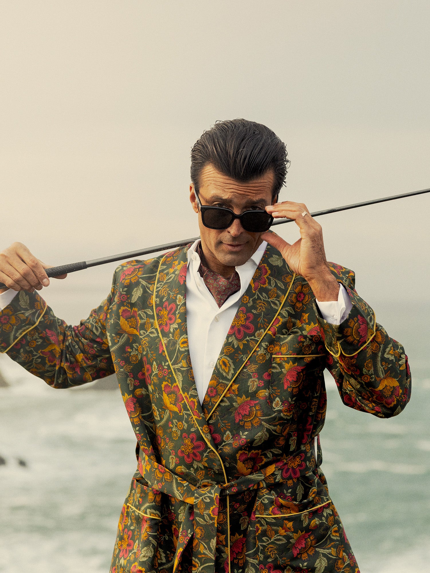 Holmes Silk Ascot shown with Hefner Silk Smoking Jacket.